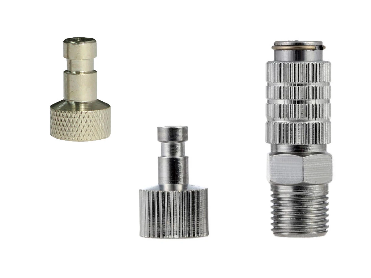 Acople rápido de conexión entre el aerógrafo y la manguera. Ideal para usar la manguera con varios aerógrafos y hacer un cambio rápido y cómodo sin necesidad de enroscar y evitando posibles pérdidas de aire entre roscas.