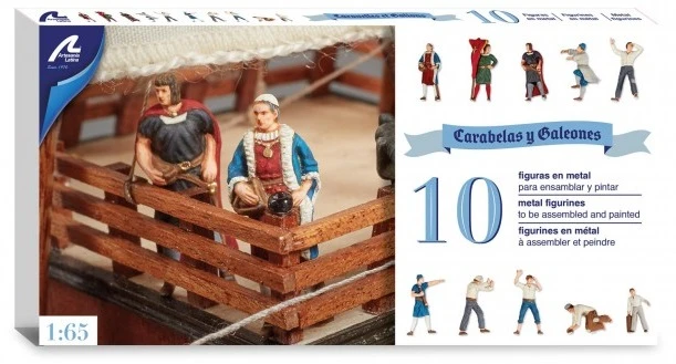 Para otorgar más realismo todavía a la maquetas de las carabelas y galeones, que no falte el kit de 10 figurines en metal a escala 1/65 de los miembros de la tripulación, listos para ser ensamblados y pintados. El kit de figurines incluye los siguientes personajes y rangos: