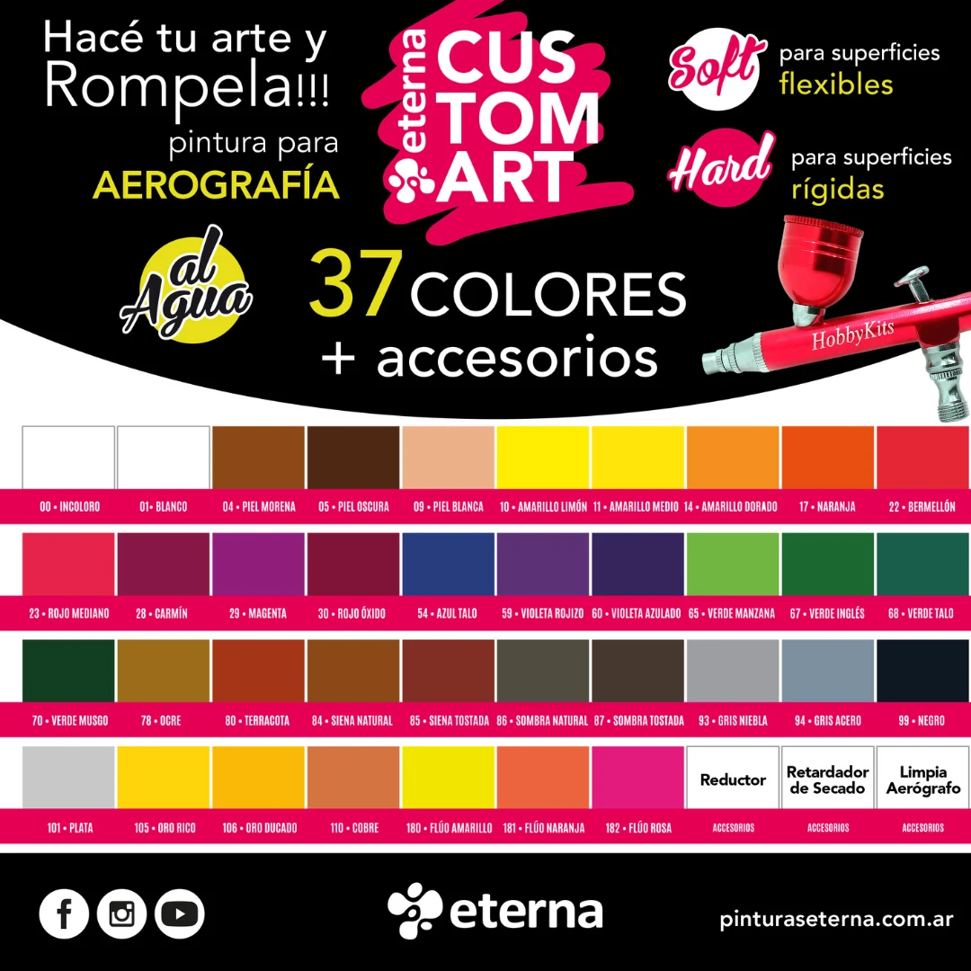 - Se sugiere el uso del retardador Eterna Custom Art para evitar el secado dentro del aerógrafo