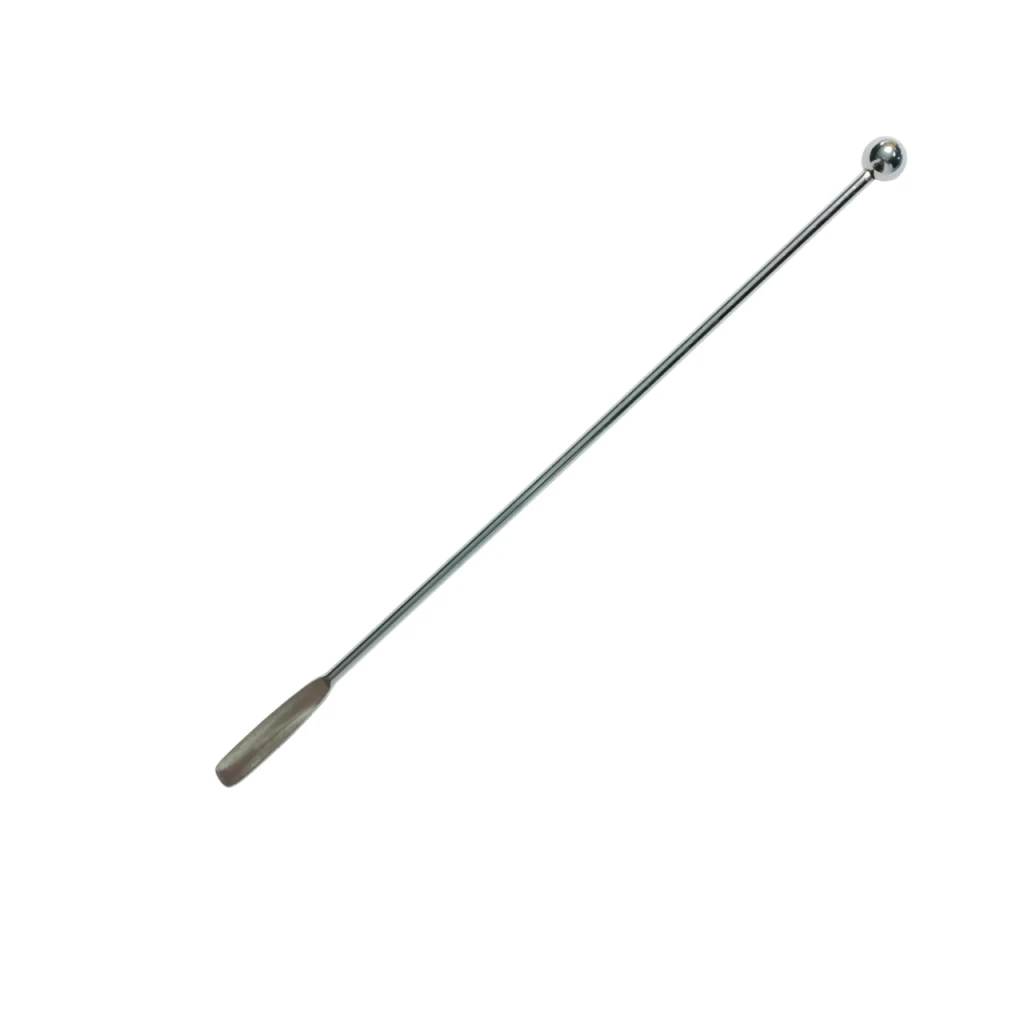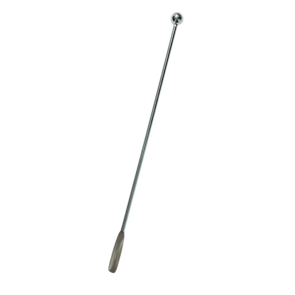 Palillo de acero para mezclar, revolver, o agitar colorantes, parafina, cera de soja y resina epoxi.