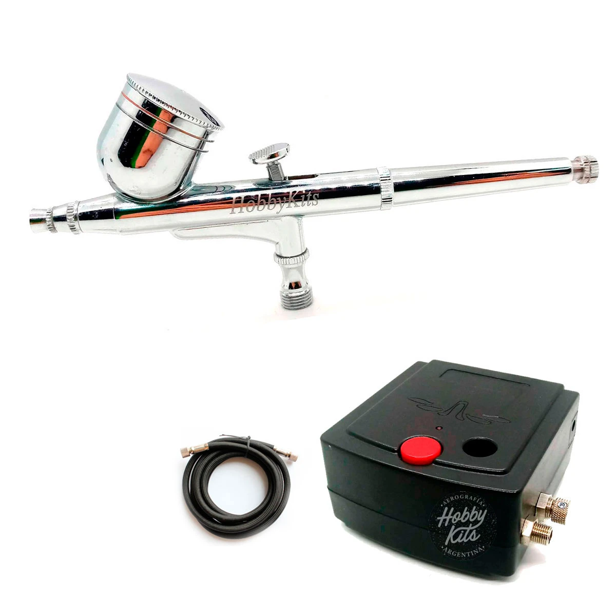 Mini compresor para aerografía. COMBO LISTO PARA USAR con Aerógrafo Y MANGUERA DE TELA INCLUIDA