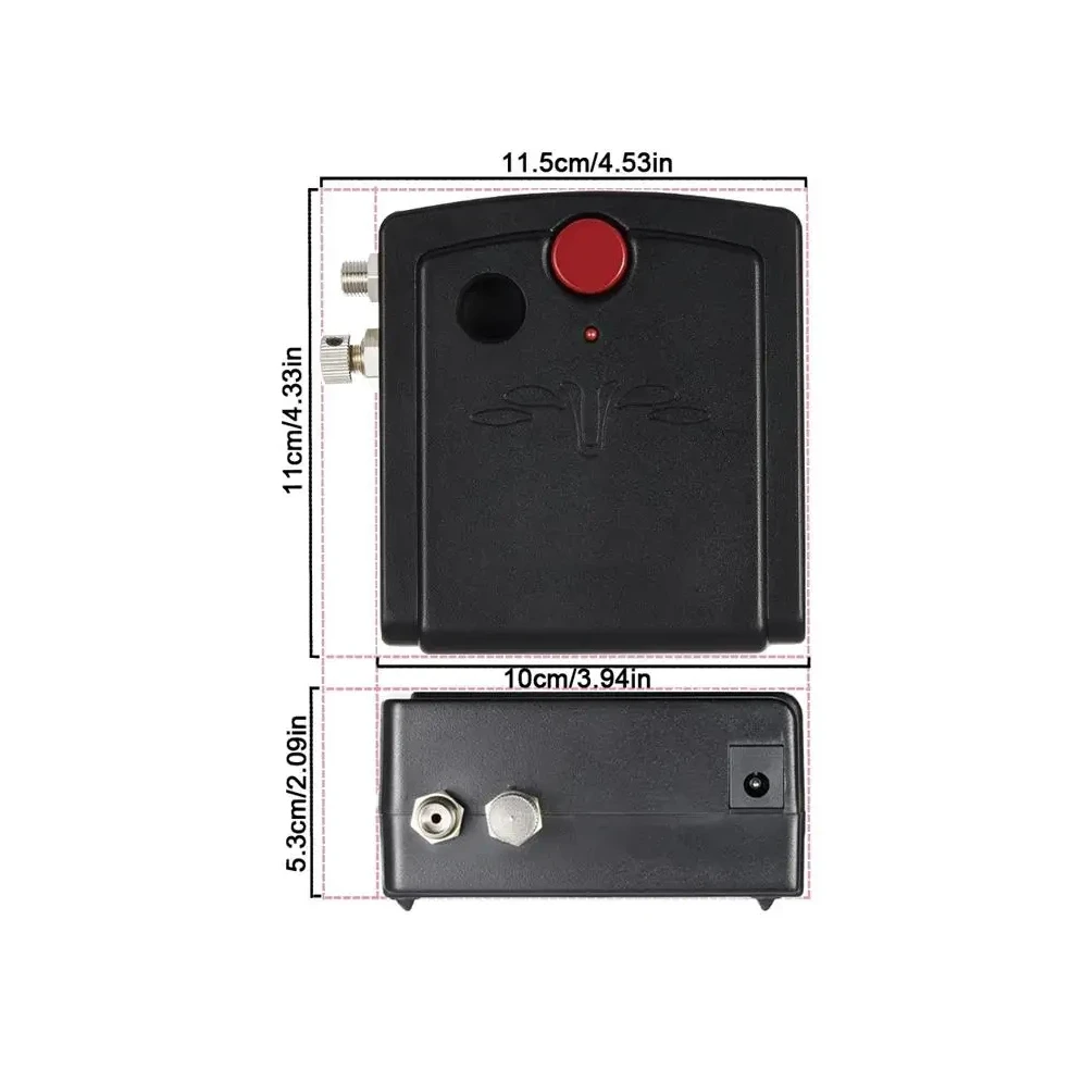 Tiempo de uso continuo: 20 minutos. El corte automático extiende el tiempo de uso, ya que el compresor se apaga cuando ud. no pulveriza no utiliza el aerógrafo.
