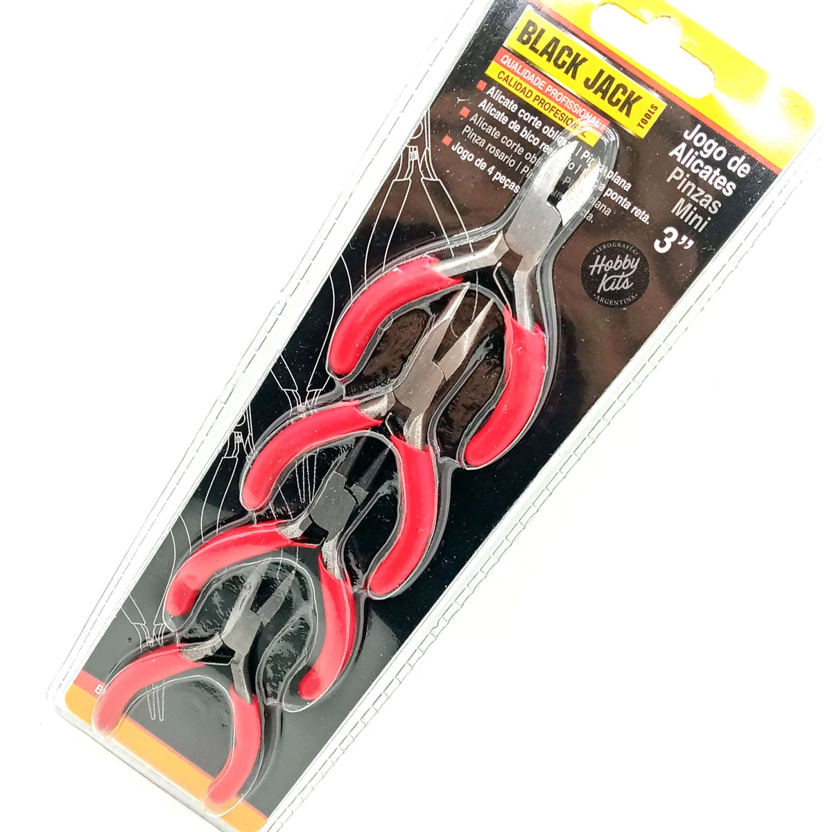 Set de alicates y pinzas. Contiene 4 unidades. Ideal para trabajar joyas y manualidades.